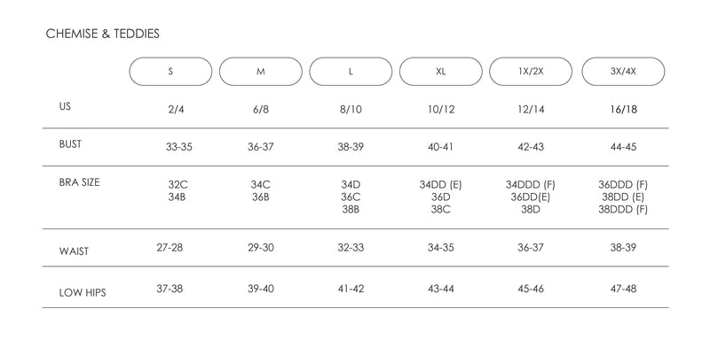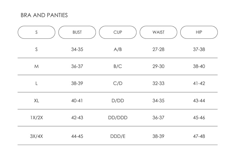 Lingerie Size Chart